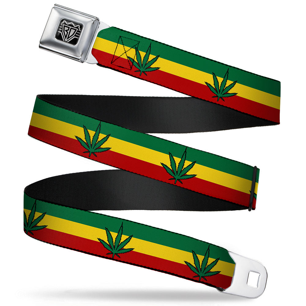 BD Wings Logo CLOSE-UP Full Color Black Silver Seatbelt Belt - Houndstooth Black/Rainbow Webbing