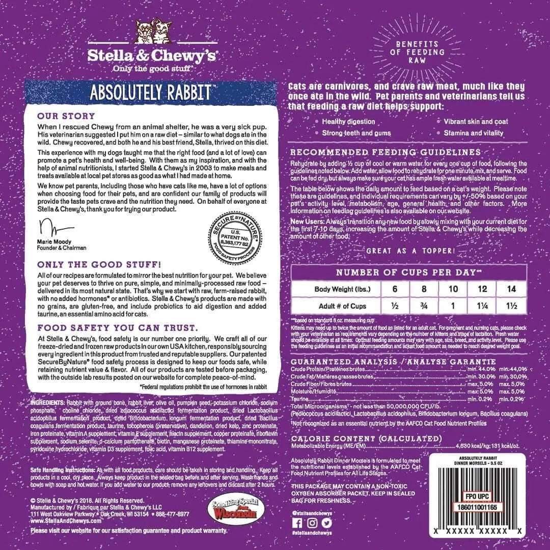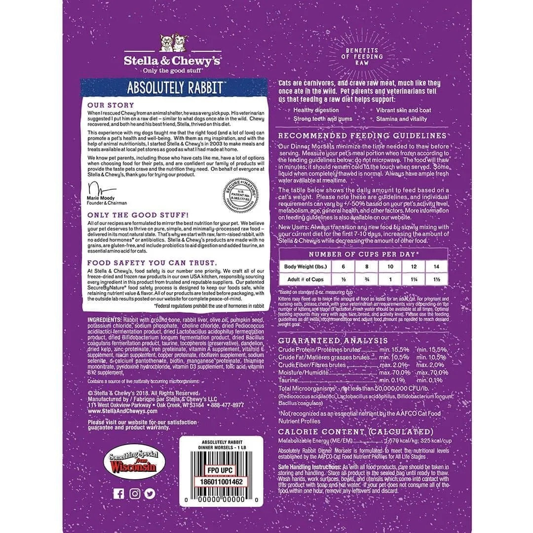 Stella & Chewy's Dinner Morsels Rabbit Frozen Cat Food (1lb)