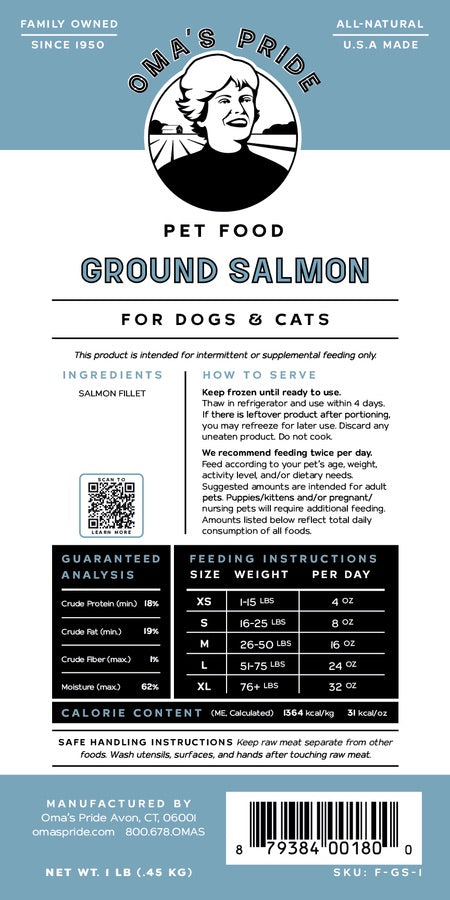 Oma's Pride Dog & Cat Ground Salmon (1lb)