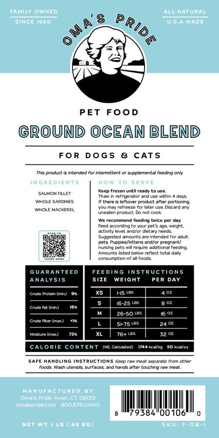 Oma's Pride Dog & Cat Frozen Ground Ocean Blend (1lb)