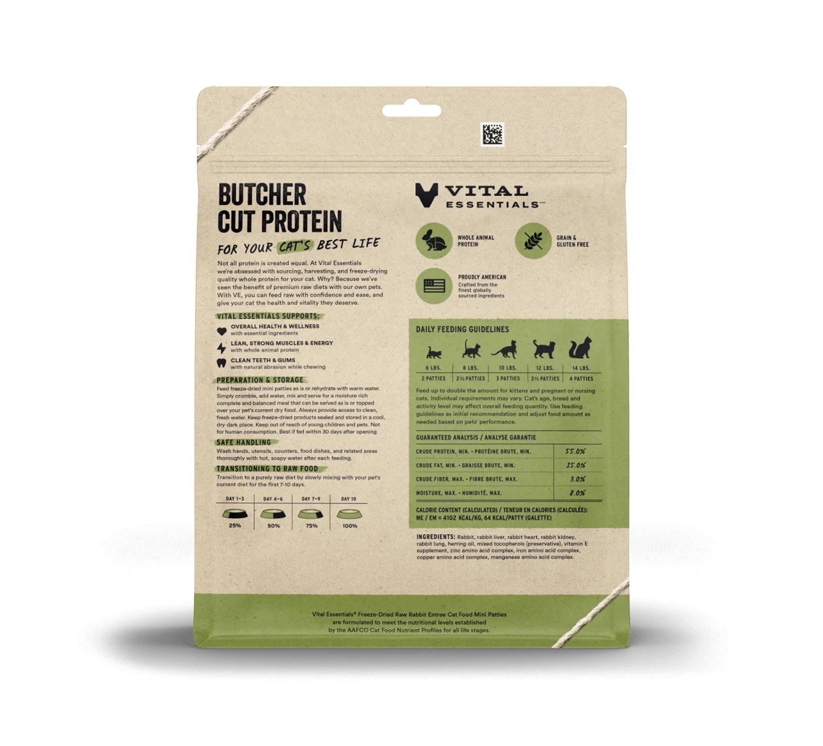 Vital Essentials Mini Patties Rabbit Entree Freeze Dried Raw Cat Food (8oz)