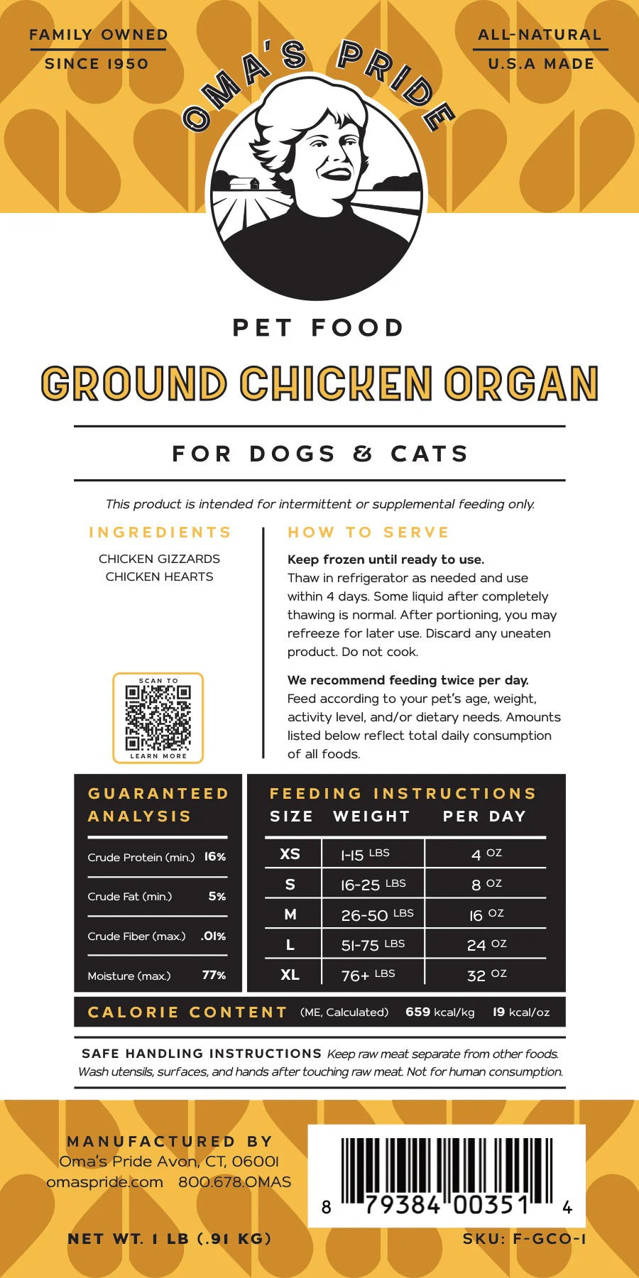Oma's Pride Ground Chicken Organ Blend for Dog & Cat (1lb)