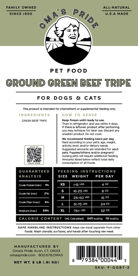 Oma's Pride Dog & Cat Frozen Ground Beef Tripe (1lb)