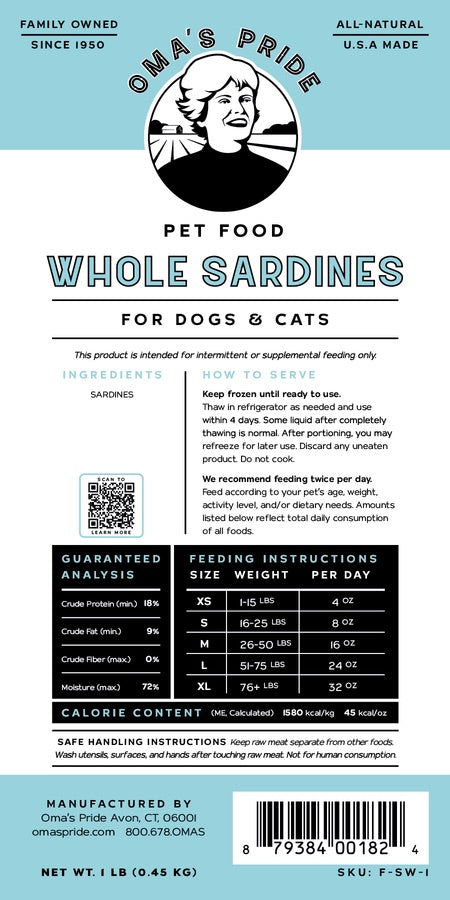 Oma's Pride Dog & Cat Whole Sardine (1lb)